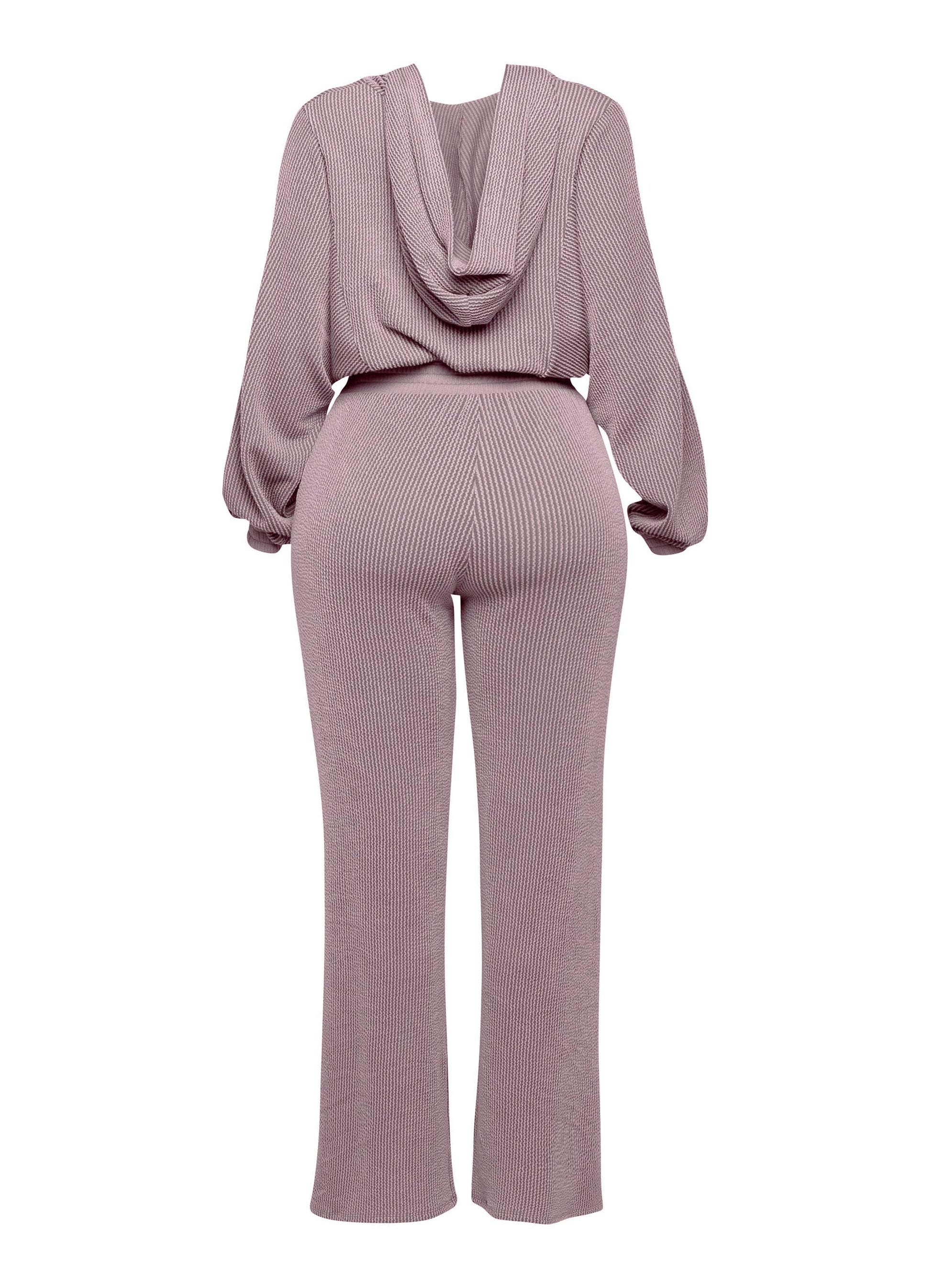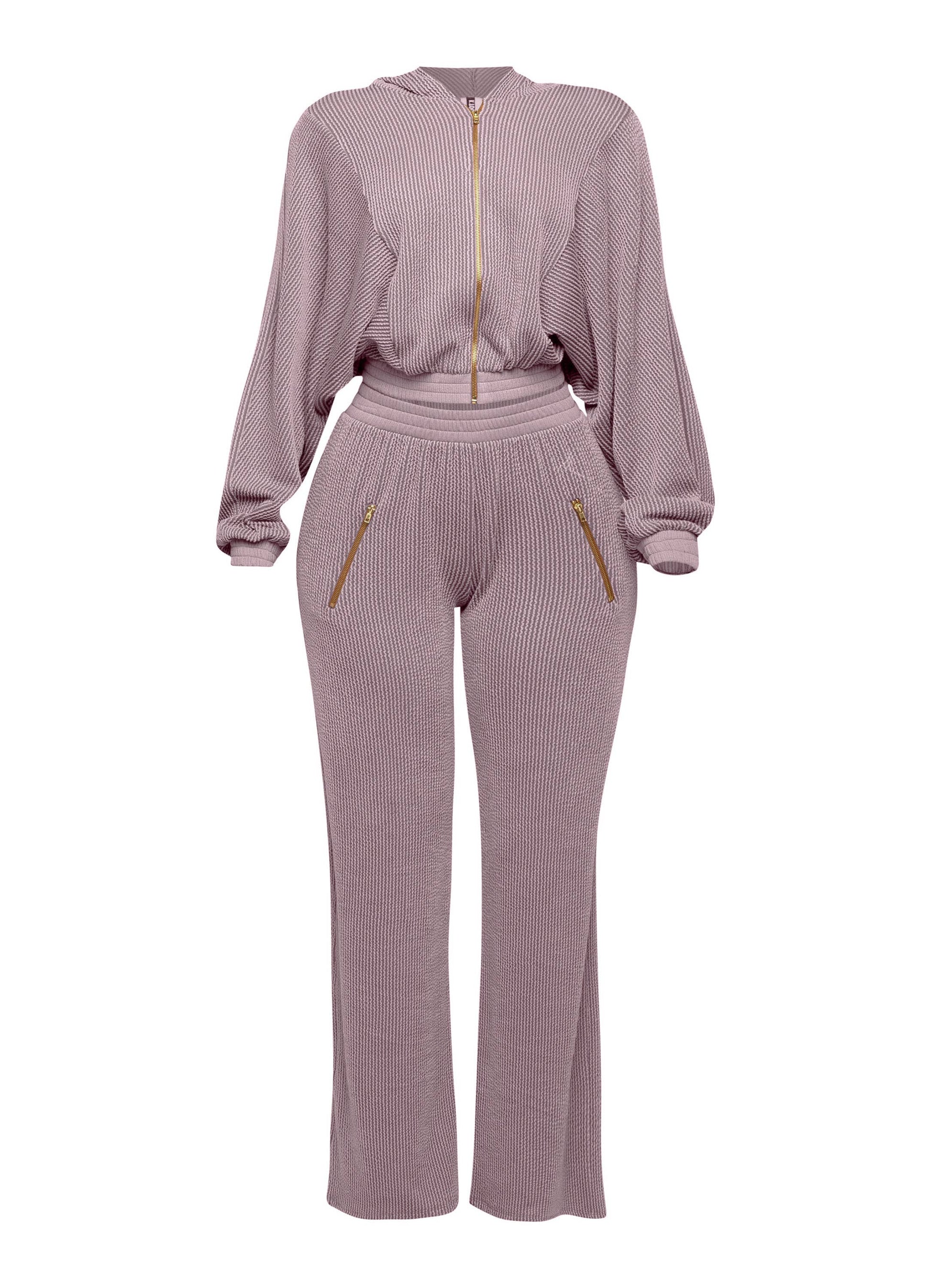 Hoodie jacket Zipper closure Ling sleeve Wide leg pants Waist band Zipper closure pocket